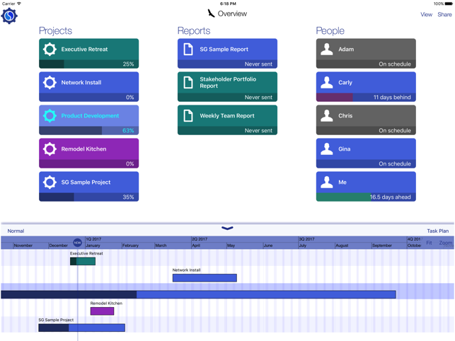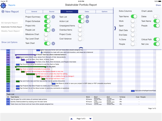 The Simple Genius brand means fresh design thinking for practical project management apps. Designed and refined by a veteran Project and Program Manager, the SG apps address real-world needs for managers. And with over 100,000 apps sold in 100 countries, SG is proven and trusted on Mac, iPad, and iPhone.SG Project Pro is the flagship of the SG suite and is the only iPad app that provides a complete project management solution including task-based planning, management of issues, risks, action items, and costs, as well as powerful and beautiful reporting. It excels at managing multiple concurrent projects and team members in ways that no other project management app does.With SG Project Pro you will gain the confidence of being in control and understanding your projects, plus look brilliant to your team, management, and stakeholders. And since the SG apps are carefully designed for ease of use and productivity anyone can use them, while focusing on the project, not the app.Features:•