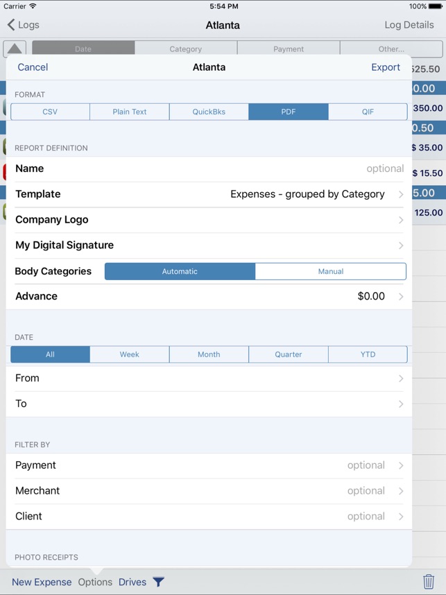 BizXpenseTracker is your Full Featured app for tracking and reporting Expenses, Mileage and Time. With ease you can create beautiful, finished PDF reports using one of the over two dozen templates supplied. Get organized easily and save money too!BizXpenseTracker (BXT) is finely tuned, exceptionally reliable and has been helping users track their expenses, mileage and time since 2010Be sure to read "What's New" listing all the improvements added in the last year* Apple named BizXpenseTracker "Noteworthy"* Selected as a "very useful app" by Apple in: Apps for Business* Inc. Magazine RecommendedAmex Recommends: http://tinyurl.com/AmexTopPickWHY BizXpenseTracker IS BETTER* NOW in its 9th year* Elegant user interface* The most powerful and flexible Reporting features available* Organize your entries into logs for maximum organization* Quick and easy on-screen filtering to get the most from your tracked data* File Linking feature allows you to link files