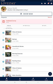 The app shows all the activities and events Members attend allows picture sharing chat and video calling plus enables families to book services such gifting guest dining and transportation through the Loveday concierge team
