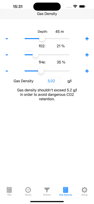 This application supports the user to estimate the O2 fraction of the gas in passive addition semi-closed rebreathers (e.g. RB2000 and RB80). In addition this app calculates the gas density at certain depth for trimix gas mixtures. The developer does not guarantee the correctness of the calculated values - always check the estimated values for correctness. Choose breathing and system parameters carefully. In case of doubt use a ppO2 meter while diving.