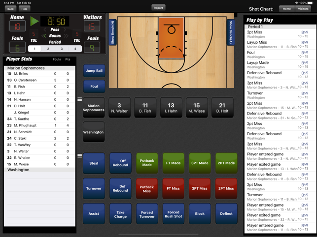 Track LIVE GAME stats and shot charts for a single player, entire team, or multiple teams. Track as little or as much as you want - instantly calculate up to 65 basketball statistics that would take hours without automation -- points in paint, lay up %, EFG%, bad passes, and more.Designed for coaches, parents, fans, statisticians, and players. Minimal touches allow for easy data capture. Innovative player substitution allows you to sub players faster than other apps. Easily undo and delete mistakes. Export and email stats per game, team, league or season (to PC or Mac).Parents can easily track an individual player's stats with streamlined single player input -- and view player efficiency ratings to help identify weaknesses and make improvements. Coaches can view specialized reports (like the Key Game Stat Report) to help make quick game decisions and easily see where the competition is getting the advantage. GENERAL FEATURES-Easy data capture-Optionally track shot locations-T