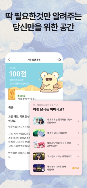다양한 운세 맛집 1위, 전 국민이 선택한 운세 플랫폼개인별 맞춤 운세 앱 포스텔러 포스텔러는 네0버,카0오 기획자,개발자들이 모여 만든 자체 사주 / 점성술 분석 시스템에860만명의 데이터를 반영하여 만든 운세 전문 앱입니다! - 누적 유저 860만명 - 누적 6,000건 이상의 다양한 콘텐츠 - 실제 유저 평점 5점 만점에 4.5점 - 우리나라 최고의 역술가들이 “직접” 편찬하는 신년운세동일한 풀이가 아닌 사주명식 속 타고난 사주로 통해 개인별 맞춤 정통 명리학 사주/궁합, 신비한 힐링 타로, 정확한 별자리 분석, 오늘의 운세, 주간 / 월간 운세, 오리지널 토정비결, 손금, 풍수, 운세툰등 운세의 다양한 풀이를 경험해보세요.● 2025 을사년 신년운세 편찬 - 체계화된 데이터를 활용한 2025년 신년운세- 재물운, 연애운 등 운세별 상세 풀이 부터 월운 흐름까지 한번에- 토정비결, 정통 사주, 타로, 점성술, 주역, 자미두수까지 다양한 운세 제공- 100~200쪽의 풍부한 해석 제공 ● 누적 콘텐츠 6,000건 이상 보유- 매월 업데이트 되는 신규 운세- 총 46개의 주제별 / 장르별 운세 제공- 무료로 즐길 수 있는 퀄리티 높은 다양한 운세● 유저 만족도 1위, 운세는 포스텔러에서- 압도적인 콘텐츠 수- 핵심만 쏙! 부담 없이 볼 수 있는 운세 풀이- 운세를 읽는 순간 몰입되는 고퀄리티 사주 명식 풀이● 오직 포스텔러에서만 즐길 수 있는 개인별 맞춤 운세- 860만명의 데이터를 분석해 개개인에 맞는 운세 추천- 봤던 운세를 다시 찾아 볼 수 있는 마이페이트북 제공● 쏟아지는 다양한 혜택- 첫 가입시 유료 운세 중 선택 한 1가지 운세 무료 제공 - 매일매일 쏟아지는 다양한 이벤트 및 할인 쿠폰포스가 항상 함께하시길!May the force be with you!페이스북: https://facebook.com/forceteller/회사 홈페이지 : https://un7qi3.co/ko※ 접근 권한 안내[필수 접근 권한]- 없음[선택 접근 권한]- 알림: