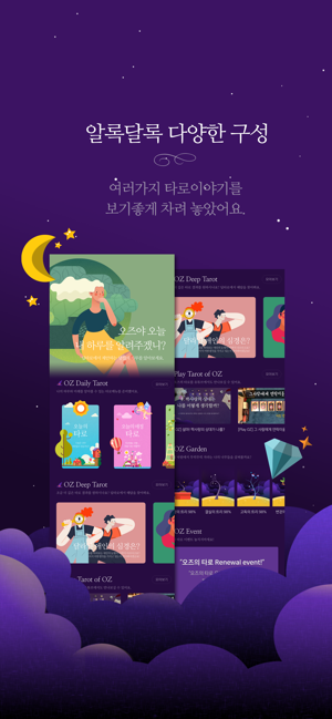 여러분에게 전해드리는 오즈의 놀라운 마법 별사탕을 이용하여 볼 수 있는 딥타로 컨텐츠가 추가되었습니다.새롭게 추가된 6개의 딥타로를 서비스를 확인해 보세요. 1. 그 사람과 나의 인연, 과연 몇 퍼센트- 나의 마음 속에 있는 그 사람은 과연 나와 몇 퍼센트(%)나 맞을까요?2. 나에게 끌리는 사람은 어떤 사람일까?- 당신에게 호감이 있는 사람은 과연 어떤 사람일까요?3. 내가 관심있는 사람과 가까워 지는 비법!- 내가 생각하고 있는 사람과 가까워 지려면 이렇게 해보세요.4. 나의 연애는 위기…ㅠㅠ 내가 먼저 연락을 해도 될까요?- 저런… 연애의 위기가 찾아왔군요. 복잡한 감정에 당신이 먼저 손을 내밀어도 될지 함께 알아볼까요?5. 내 연애는 왜 유독 힘들까?- 모두 연애하고 행복해 하는데… 당신은 왜 유독 연애가 힘이 들까요? 오즈에서 이유를 알아볼래요?6. 앞으로 3개월 동안 내가 조심해야 할 일은?- 3개월 동안 조심해야할 당신의 일들을 오즈가 알려드려요.이 외에도 당신의 마음을 위로해줄 다양한 딥타로를 만나보세요. 오즈의타로는 유튜브를 통해서도 만나보실 수 있습니다. 이제 어플을 통해 보는 타로가 살짝 지루하다면 오즈의타로 마스터님이 직접 전해주는 오즈의타로 유튜브를 만나 여러분의 고민을 해결해 보세요. 그리고 마지막으로 오즈의타로에는 신비한 고요의화원이 있다는걸 알고 계시나요? 정성드려 트리를 키우고 여러분의 마음을 힐링하세요. 자, 이제 함께 가실까요? * 오즈의 타로는 22장의 메이저 타로카드 를 이용한 타로점입니다. * 타로카드를 선택하실 때, 간절한 마음을 담아 카드를 선택해주세요. * 새로이 다가오는 신년의 운세를 확인해보세요. * 너무 놀라지는 마세요. 그냥, 조언이랍니다. * 타로 무료운세! 고퀄리티 타로카드 이미지! * 20개의 다양한 주제에 대해서 오즈의 타로를 이용해보세요. (인기메뉴) * 투시 타로 - 그 사람은 나를 어떻게 생각할까? 속마음을 알아보자! * 화해타로 : 말다툼을 한 친구와 화해하고 싶다면 오즈에게 물어보세요.* 거짓