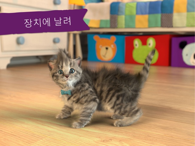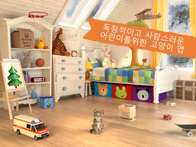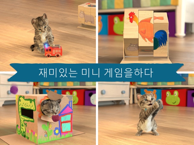 우리의 귀엽고 현실적인 애완 동물 고양이는 여러 상을 수상했습니다.뛰어난 디자인을위한 "키즈 베스트 픽 어워드 기술"!학부모 초이스 상애플의 "App of the Week"!"귀여운 새끼고양이"은 모든 어린이가 꿈꾸는 장난기 넘치고 유쾌하면서도 사랑스러운 작은 애완동물입니다. 비행기 타기, 공 던져 넣기, 숨바꼭질, 침대 트램펄린을 즐기거나 발 모양 그림 그리기로 창의력을 발휘하세요. 최고의 친구인 새끼고양이와 언제라도 재미있는 시간을 보낼 수 있습니다! 새끼고양이의 세계를 탐험하고 귀여운 애니메이션을 찾아 보며 귀여운 고양이 친구를 보살피고 함께 웃어보세요.아이들이 아이콘과 메뉴는 최소한으로 사용하도록 게임이 디자인되어 있습니다. 다양하게 교감할 수 있는 8가지의 미니 게임은 폭넓은 연령이 좋아하도록 디자인되었습니다. 이 앱의 취지는 승패나 경쟁이 아니라 어린이가 즐거워할 수 있는 환경에서 재미를 느끼고 자신도 모르게 학습하도록 하는 것입니다! 목적이 있는 훌륭한 미니 게임!:호환성 :이 응용 프로그램은 iPad2, iPhone 4s, iPad Mini1, iOS9가있는 iPod5를 지원하지 않습니다.1) 새끼고양이와 숨바꼭질 - 집중력 향상.2) 발 모양 그림 그리기 - 창의력 발휘! 빨강, 노랑, 파랑을 섞어 상상할 수 있는 모든 색을 만들기 - 어린이가 실제의 색상 혼합을 배운 후 발 모양이나 보통 붓으로 자신만의 작품을 만들어냅니다.3)쥐와 치즈 - 구역을 기억해서 새끼고양이를 지나 치즈가 있는 곳으로 쥐를 몰래 보냅니다. 아니면, 귀여운 새끼고양이가 쥐를 잡을 때 어떻게 하는지 보며 웃어보세요!4) 침대 트램펄린 - 귀여운 새끼고양이의 숨은 묘기와 장기를 알아보세요!5) 동물 퍼즐 - 웃기는 동물 조합을 짜맞추어 귀여운 새끼고양이에게 줄 비스킷을 획득합니다.6) 먹이 주기 - 미니 게임을 플레이할 때마다 고양이 먹이를 받습니다. 어린이는 귀여운 새끼고양이에게 먹이 주기와 먹은 후 고양이가 입술을
