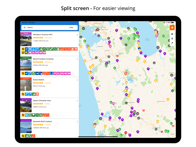 WikiCamps is the ultimate camping companion, whether you're heading away for a weekend camping trip or planning a big adventure, WikiCamps will be your guide.The best part is, it works completely OFFLINE so you don't have to worry about phone signal or a WiFi connection.Simply download all the content (and map) to your device before you go and you'll have it in the palm of your hand, no matter where you are!WikiCamps is a crowd sourced database of campgrounds, caravan parks, backpacker hostels, day stops, POI's, dump points, information centres, and water points (toilets, showers, taps).Sites are added, modified and shared by hundreds of thousands of WikiCamps users like yourself, making it THE LARGEST AND MOST UP-TO-DATE database available in one app!The database is always growing and constantly being updated with the latest reviews, prices and photos.With over 9,000 site listings, join Canada's number #1 camping app and start the planning your next adventure today