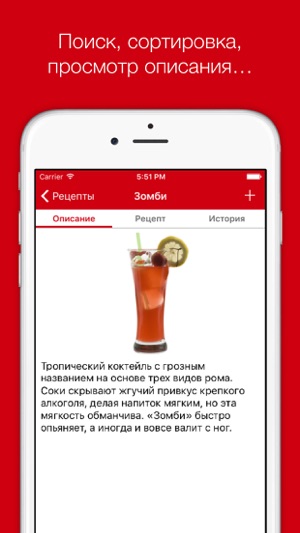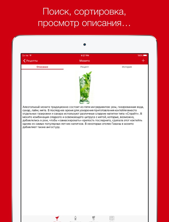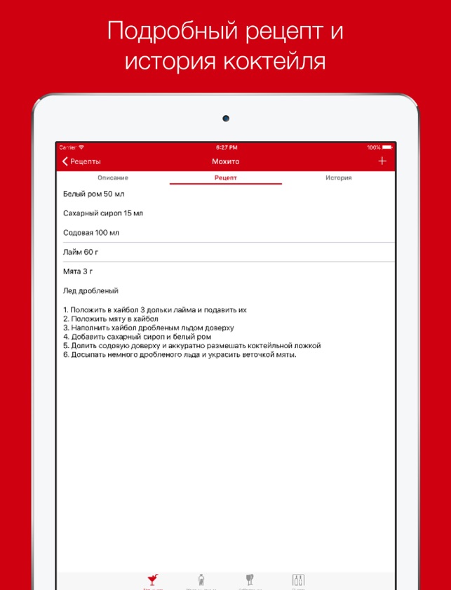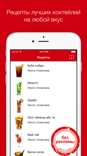 Рецепты лучших алкогольных коктейлей для всех и каждого. Быстрый поиск и сортировка по коктейлям позволит вам в считанные секунды подобрать напиток по вкусу. Емкое описание, подробный рецепт и увлекательная история к каждому коктейлю!- поиск по коктейлям и ингредиентам- описание, рецепт, история к каждому коктейлю- избранное- доступ без интернета- без рекламыОставляйте свои отзывы и пожелания :)