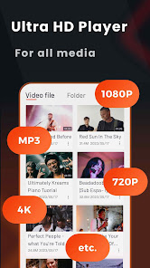 Ultra HD video player automatically plays videos in maximum HD resolution by default