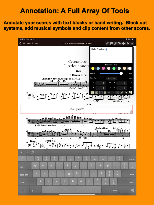 Say goodbye to multiple 3 ring binders, suitcases full of books, and time wasted trying to find that one song that you need. iGigBook organizes all your PDF sheet music resources, including real books, fake books, transposable chord charts, single sheets, and multi-page scores so that you can access all your music at any time, for any gig.Created by gigging musicians for gigging musicians, iGigBook features a powerful search engine that allows you to instantly find any song you need from thousands in your sheet music collection. Show up to any gig confident that when the tune is called, you'll have it ready while others fumble and flip through pages. iGigBook works like the powerful search engines that you've used for finding stuff on the web. Start typing in the name of a song and search results from over 70 books appear so that you can choose the best arrangement that you have available. Only iGigBook can allow you to find, in seconds, all versions of "Autumn Leaves&