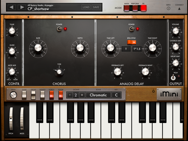 iMini offers a level of sound quality never before found on the iPad, as well as over 500 sounds by leading sound designers. iMini is a recreation of the legendary synthesizer created by Bob Moog in 1971, one of most iconic synthesizers of all time. Use it in Tabletop to compose your music.Need help? Have an issue or question? Please email us at support@retronyms.com.The 1971 reference of the iMini was made famous by artists and bands such as Stevie Wonder, Depeche Mode, Kraftwerk, Keith Emerson, Devo, Jean Michel Jarre and more. We brought the features and sound of this classic to the iOS platform! iMini not only recreates the look and feel of the most legendary synthesizer, it does it with unparalleled sound quality. iMini is based on the award winning Arturia Mini V software that was created in partnership with Dr. Robert Moog himself, back in 2003. Thanks to this heritage, continuous research and refinements over the years, iMini comes with amazing sound quality and a large collect