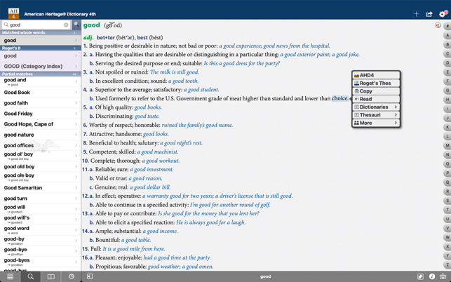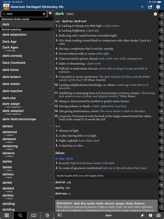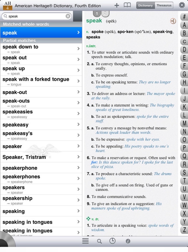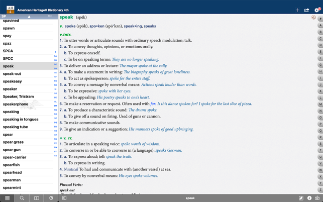 로, 수록 단어만 해도 무려 30만 단어에, 33,000개의 예문, 그리고 64,000개의 음성 데이터 등 총 4,222,000단어를 모두 수록했습니다. "어메리칸 헤리테지 영영사전 제4版" 의 이번 iPhone및 iPod touch 버전은, 어메리칸 헤리테지 사전 2,074페이지(3kg이 넘는 무게)에 달하는 분량으로, 수록 단어만 해도 무려 30만 단어에, 33,000개의 예문, 그리고 64,000개의 음성 데이터 등 총 4,222,000단어를 모두 수록했습니다. ■특징・베스트셀러를 통째로 수록・학자가 쓴 논문과 저자후기까지 모두 수록・각기 다른 3가지 방법에 의한 삼중 검색시스템으로 적절한 검색 결과 제시・입력과 연동된 예측 실시간 검색 기능・철자오류 지적 기능・생소한 단어를 검색할 때 편리한 와일드카드 검색기능・발음기호의 IPA 방식 자동 변환・타 애플리케이션을 통한 검색 써포트・편집 가능한 북마크 기능・검색 이력 기능・AI 강화 애너그램 생성기・사용자가 자유롭게 작성할 수 있는 플래시 카드 기능・사용자가 만드는 퀴즈 문제집 기능・원어민 발음의 음성 데이터 제공・완벽한 오프라인 사용 환경(3G 및Wi-Fi불필요) • iPhone, iPod, iPad and macOS support※ 음성 데이터 재생에 관하여 본체가 매너모드로 설정되어 있는 경우, 음성 데이터가 재생되지 않을 수 있습니다. 도움말 또는 써포트 페이지의 안내를 참조하시어 설정상태를 확인해 주시기 바랍니다. http://www.enfour.co.jp/iphone/support/index.html※ 본 애플리케이션 사용법 및 기타 문의 사항은, 메일을 통해 고객 지원센터로 문의해 주시기 바랍니다.