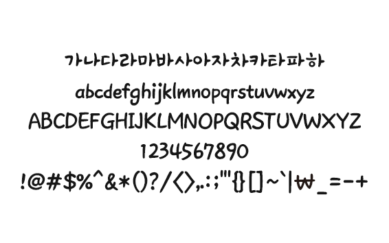 폰트소개붓으로 손글씨의 특징을 살려 획의 두께에 차이를 두고 자모음과 글꼴의 공간감을 배분해 질감의 효과를 표현 최적화된 개별적인 글자폭을 적용 문장에서 안정감이 있도록 개발된 서체사용범위개인이 비상업적인 용도로 사용하는 것으로 한하며, 기업이나 기관 및 단체 등의 사용자가 사용하는 것은 불가 합니다.참고사항유료로 판매하는 것은 엄격히 금지하며 폰트 수정은 어느 경우에도 금지합니다. 다른 소프트웨어와 번들하거나 판매할 수 없습니다.폰트 배포의 건소프트쉐어에서는 재배포가 허용된 무료 폰트에 한정하여 배포하고 있습니다.본 페이지에서 제공하는 폰트 사용 범위, 저작권 정보는 최신 정보가 아닐 수 있습니다.폰트와 관련된 자세한 사항 및 상업적 사용에 대한 상세 정보는 개발자에 직접 문의하시길 바랍니다.자동설치형 폰트(EXE)는 다운로드 후 해당 파일을 실행하시면 자동 설치됩니다.Windows XP는 수동설치 폰트는 다운로드 후 “시작버튼 > 제어판 > 모양 및 개인설정 > 글꼴”에 다운로드 받은 폰트파일을 넣습니다.Windows 7에서는 폰트파일을 더블클릭 또는 우클릭 후 설치 메뉴를 선택합니다.TTF (True Type Font,)는 Window용 , OTF (Open Type Font)는 Mac용 폰트 입니다