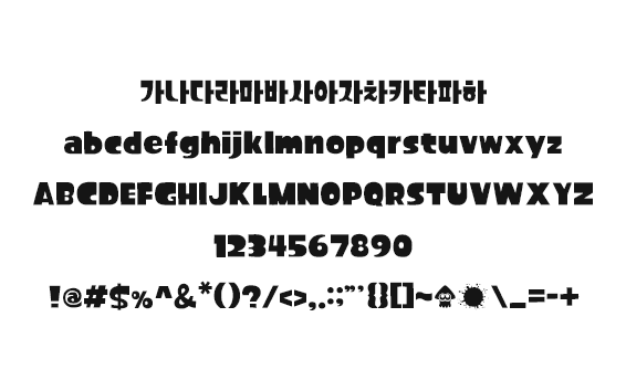 폰트소개닌텐도 Wii U 소프트스플래툰발매 1주년 기념으로 만든 한글 폰트입니다사용범위스플래툰 한글 폰트는 스플래툰 유저이자 팬인 제가스플래툰 발매 1주년을 기념하고자 개인 소장용으로 제작하였습니다현재 일본이나 서양 팬들도 각 나라 언어의 스플래툰 폰트를 만들었는데 특별히 닌텐도에서 제재는 없는 상황입니다하지만 혹시나 저작권 관련으로 문제가 생길 수가 있기 때문에한글을 제외한 일본어/영어/특수문자의 상업적 이용을 엄격히 금합니다한글의 저작권은 저에게 있으니 자유롭게 사용하셔도 괜찮습니다다만 상업적으로 이용시 블로그에 댓글 남겨주시면 감사하겠습니다http//blognavercom/wonno79/220890111239폰트 배포의 건소프트쉐어에서는 재배포가 허용된 무료 폰트에 한정하여 배포하고 있습니다본 페이지에서 제공하는 폰트 사용 범위 저작권 정보는 최신 정보가 아닐 수 있습니다폰트와 관련된 자세한 사항 및 상업적 사용에 대한 상세 정보는 개발자에 직접 문의하시길 바랍니다자동설치형 폰트EXE는 다운로드 후 해당 파일을 실행하시면 자동 설치됩니다Windows XP는 수동설치 폰트는 다운로드 후 시작버튼 gt 제어판 gt 모양 및 개인설정 gt 글꼴에 다운로드 받은 폰트파일을 넣습니다Windows 7에서는 폰트파일을 더블클릭 또는 우클릭 후 설치 메뉴를 선택합니다TTF True Type Font는 Window용 OTF Open Type Font는 Mac용 폰트 입니다