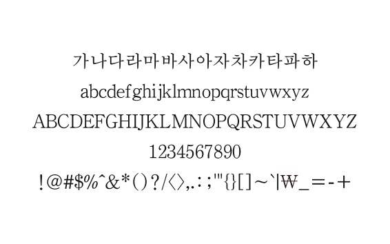 폰트소개기존 본문 명조체의 문제점들을 철저히 연구, 분석하여 시선의 흐름을 자연스럽게 유도하여 고품질의 출판 및 광고분야에서 널리 사용될 수 있도록 설계된 명조체입니다.사용범위개인이 비상업적인 용도로 사용하는 것으로 한하며, 기업이나 기관 및 단체 등의 사용자가 사용하는 것은 불가 합니다.참고사항유료로 판매하는 것은 엄격히 금지하며 폰트 수정은 어느 경우에도 금지합니다. 다른 소프트웨어와 번들하거나 판매할 수 없습니다.폰트 배포의 건소프트쉐어에서는 재배포가 허용된 무료 폰트에 한정하여 배포하고 있습니다.본 페이지에서 제공하는 폰트 사용 범위, 저작권 정보는 최신 정보가 아닐 수 있습니다.폰트와 관련된 자세한 사항 및 상업적 사용에 대한 상세 정보는 개발자에 직접 문의하시길 바랍니다.자동설치형 폰트(EXE)는 다운로드 후 해당 파일을 실행하시면 자동 설치됩니다.Windows XP는 수동설치 폰트는 다운로드 후 “시작버튼 > 제어판 > 모양 및 개인설정 > 글꼴”에 다운로드 받은 폰트파일을 넣습니다.Windows 7에서는 폰트파일을 더블클릭 또는 우클릭 후 설치 메뉴를 선택합니다.TTF (True Type Font,)는 Window용 , OTF (Open Type Font)는 Mac용 폰트 입니다