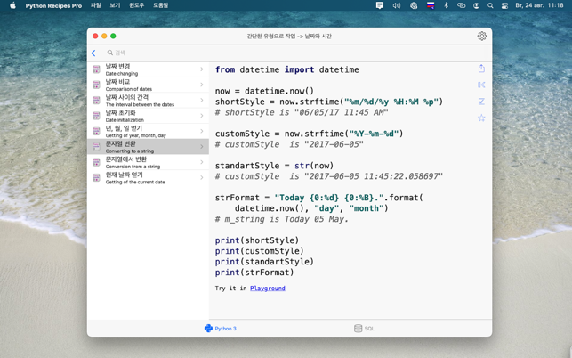 Python 및 SQL 쿼리에서 일반적으로 자주 사용되는 작업에 대한 참조 서적이 포함되어 있습니다.이 응용 프로그램은 2015년부터 개발되었으며 시간과 수천 명의 사용자를 대상으로 테스트되었습니다.• 최고의 코드 레시피를 기반으로 프로그래밍을 배우십시오.• Python: - 하위 문자열을 얻는 방법은 무엇입니까? - 배열을 필터링하는 방법은 무엇입니까? - JSON 형식으로 데이터를 직렬화하는 방법은 무엇입니까?• SQL: - 하나의 쿼리로 여러 테이블을 조인하는 방법은 무엇입니까? - 데이터 그룹화 결과를 어떻게 정렬하나요? - SQL Server DBMS에는 어떤 종류의 데이터가 있나요?• 이 응용 프로그램에는 책과 전문 인터넷 리소스에서 얻은 최고의 코드 예제가 포함되어 있습니다. 최적의 솔루션을 찾기 위해 인터넷을 검색하는 데 몇 시간의 작업 시간을 보낼 수 있습니다. 애플리케이션에는 이미 만들어져 있고 입증된 코드 "레시피"가 포함되어 있습니다.• 모든 레벨에 적용 가능! 초보자는 코드 예제를 통해 언어의 구문을 배울 수 있습니다. 전문가들은 기성 솔루션을 사용하여 작업 시간을 절약합니다.• 이 응용 프로그램은 시험을 치르거나 면접을 준비할 때 일반적인 과제를 공부하는 데 도움이 됩니다.• 개발자의 전문적인 수준을 향상시키는 연구를 위한 디자인 패턴의 예가 포함되어 있습니다.• iOS 및 macOS용 단일 애플리케이션. 한 번 구매하면 휴대폰, 태블릿, 컴퓨터에서 사용할 수 있습니다.• 나는 개발자로서 작업 속도를 향상시키기 위해 이 애플리케이션을 사용합니다.• 코드나 주제명으로 원하는 예시를 빠르게 검색하세요.• 애플리케이션의 모든 예제는 오프라인에서 사용할 수 있습니다.신청서를 귀하의 언어로 번역하는 데 도움을 주실 수 있는 경우 이메일로 저에게 연락해 주십시오.