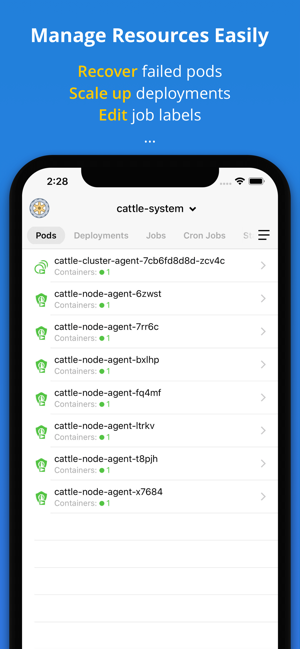 Kuber helps you manage Kubernetes clusters easily via your mobile device, making it possible to view the status of clusters and quickly fix issues from the comfort of your couch.Kuber has many features (and there are more to come!):1. View the status of almost any resources. e.g. Pods, Deployments, PVs, Jobs, CronJobs, Nodes, Config Maps, Docker containers and so on.2. Scale deployments (Replica sets/Replication controllers) to accommodate short-term spikes in traffic.3. Inspect logs of any containers in realtime!4. Integrate with bash shell to exec commands inside the containers.4. Edit labels & Annotations via the lovely interface.5. View / Update almost any resources via YAML.6. Support managing multiple clusters.7. Invoke shell commands inside the container.8. View top nodes & pods (requires metrics server).9. Supported authentication methods: Certificate, Credentials, Token, AWS IAM Authenticator (EKS), Google Cloud Platform (GCP), and DigitalOcean.10. Support Face ID / To