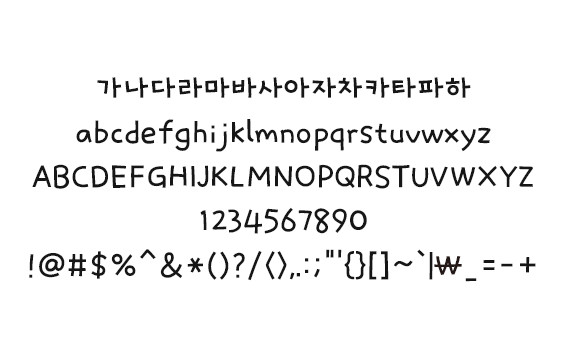 폰트소개아동용에 적합하도록 기획한 폰트로, 종성이 초성보다 작고 모음의 가로획에 약간의 기울기를 주어 귀엽고 사랑스러우며, 아이들의 순수함을 강조한 고딕형 폰트입니다.사용범위개인이 비상업적인 용도로 사용하는 것으로 한하며, 기업이나 기관 및 단체 등의 사용자가 사용하는 것은 불가 합니다.참고사항유료로 판매하는 것은 엄격히 금지하며 폰트 수정은 어느 경우에도 금지합니다. 다른 소프트웨어와 번들하거나 판매할 수 없습니다.폰트 배포의 건소프트쉐어에서는 재배포가 허용된 무료 폰트에 한정하여 배포하고 있습니다.본 페이지에서 제공하는 폰트 사용 범위, 저작권 정보는 최신 정보가 아닐 수 있습니다.폰트와 관련된 자세한 사항 및 상업적 사용에 대한 상세 정보는 개발자에 직접 문의하시길 바랍니다.자동설치형 폰트(EXE)는 다운로드 후 해당 파일을 실행하시면 자동 설치됩니다.Windows XP는 수동설치 폰트는 다운로드 후 “시작버튼 > 제어판 > 모양 및 개인설정 > 글꼴”에 다운로드 받은 폰트파일을 넣습니다.Windows 7에서는 폰트파일을 더블클릭 또는 우클릭 후 설치 메뉴를 선택합니다.TTF (True Type Font,)는 Window용 , OTF (Open Type Font)는 Mac용 폰트 입니다