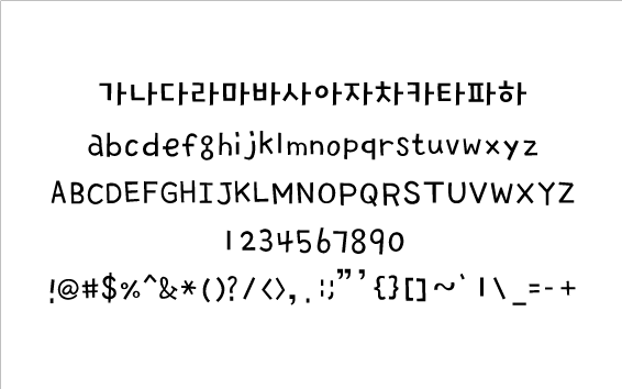 폰트소개자음과 모음을 활용한 디자인 서체입니다사용범위더폰트그룹의 폰트 무료사용 범위는 개인 사용자가 비상업적인 용도로 사용하는 경우에 한하여 사용이 가능합니다참고사항유료로 판매하는 것은 엄격히 금지하며 폰트 수정은 어느 경우에도 금지합니다 다른 소프트웨어와 번들하거나 판매할 수 없습니다폰트 배포의 건 소프트쉐어에서는 재배포가 허용된 무료 폰트에 한정하여 배포하고 있습니다본 페이지에서 제공하는 폰트 사용 범위 저작권 정보는 최신 정보가 아닐 수 있습니다폰트와 관련된 자세한 사항 및 상업적 사용에 대한 상세 정보는 개발자에 직접 문의하시길 바랍니다자동설치형 폰트EXE는 다운로드 후 해당 파일을 실행하시면 자동 설치됩니다Windows XP는 수동설치 폰트는 다운로드 후 시작버튼 gt 제어판 gt 모양 및 개인설정 gt 글꼴에 다운로드 받은 폰트파일을 넣습니다Windows 7에서는 폰트파일을 더블클릭 또는 우클릭 후 설치 메뉴를 선택합니다TTF True Type Font는 Window용 OTF Open Type Font는 Mac용 폰트 입니다