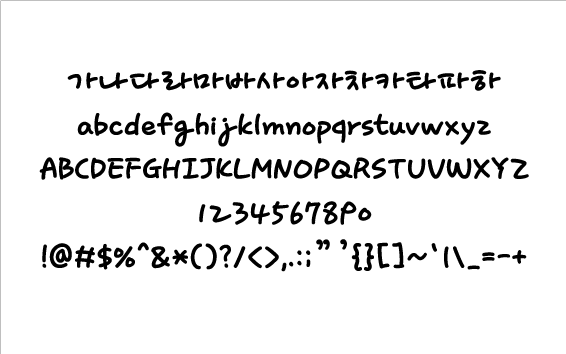 폰트소개자음과 모음을 활용한 손글씨 서체입니다사용범위더폰트그룹의 폰트 무료사용 범위는 개인 사용자가 비상업적인 용도로 사용하는 경우에 한하여 사용이 가능합니다.참고사항유료로 판매하는 것은 엄격히 금지하며 폰트 수정은 어느 경우에도 금지합니다. 다른 소프트웨어와 번들하거나 판매할 수 없습니다.폰트 배포의 건소프트쉐어에서는 재배포가 허용된 무료 폰트에 한정하여 배포하고 있습니다.본 페이지에서 제공하는 폰트 사용 범위, 저작권 정보는 최신 정보가 아닐 수 있습니다.폰트와 관련된 자세한 사항 및 상업적 사용에 대한 상세 정보는 개발자에 직접 문의하시길 바랍니다.자동설치형 폰트(EXE)는 다운로드 후 해당 파일을 실행하시면 자동 설치됩니다.Windows XP는 수동설치 폰트는 다운로드 후 “시작버튼 > 제어판 > 모양 및 개인설정 > 글꼴”에 다운로드 받은 폰트파일을 넣습니다.Windows 7에서는 폰트파일을 더블클릭 또는 우클릭 후 설치 메뉴를 선택합니다.TTF (True Type Font,)는 Window용 , OTF (Open Type Font)는 Mac용 폰트 입니다