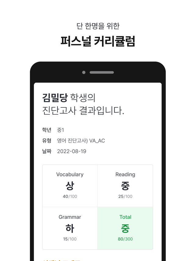 오직 밀당PT에서만 가능한, 일반 학원에서는 경험하지 못했던 대치동 수준의 1:1 온택트 PT 프로그램!1. 20:1의 경쟁률을 뚫은 대치동급 1:1 전담 온택트 선생님 배정2. 단순한 레벨테스트가 아닌 AI 기술에 기반한 초정밀 진단고사 진행3. 획일적인 커리큘럼 NO! 오직 단 1명만을 위한 맞춤 커리큘럼 셋팅4. 맞춤 수업 및 관리 진행일반 학원은 따라올 수 없는 완벽한 내신/수능 대비 맞춤형 커리큘럼을 경험해보세요.[내신 완벽대비]1. 전국 학교별 교과서/부교재2. 1지문당 40여개의 유형별 변형문제3. 전국 교과서별 맞춤강의 제공4. 시험기간 특별학습 및 스케쥴 관리[수능 완벽대비]1. 개인별 1:1 맞춤 커리큘럼2. 수준별 400여개의 맞춤 강의 제공3. 약점 분석 & 보완학습'대치동에 안 살아도' 전국의 학생들이 대치동급 1:1 온택트 PT를 받고 있습니다.