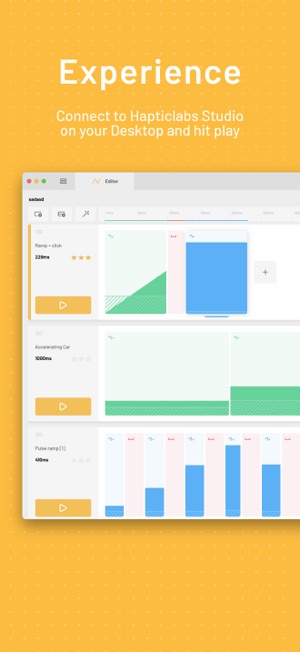 Hapticlabs is a design platform to create custom haptic effects.Designers, researchers and developers can craft intuitive and immersive haptic feedback for mobile devices:- Explore haptified UI elements for your app or game- Design intuitive patterns in our desktop app - Easily create and tailor custom patterns- You can test effects in real-time on your device- Design brand-specific haptic responses- Export ready to deploy code- Generate patterns with Hapticlabs Ai- Evaluate presets side-by-side- Combine haptics with audio- .. and much more!Perfect for UX designers, app developers, and creative professionals looking to add an extra dimension to their digital experiences.Download Hapticlabs Studio at www.hapticlabs.io now to bring your interactions to life!