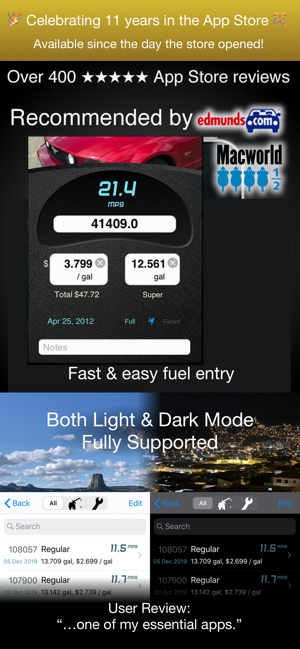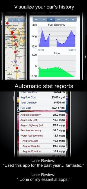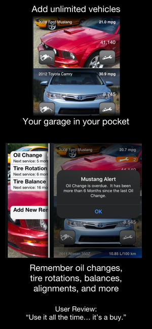 Track fuel economy for all your automobiles & get vehicle maintenance reminders with a customizable, user-friendly interface. Fully iOS 13 compatible!Car Care is recommended by The New York Times, Edmunds, & Macworld. 40% off the regular $4.99 price!Rob Griffiths, Macworld, 4.5 mice - "Car Care offers [many] additional features, including financial reporting, service reminders, and mileage tracking by fuel grade."New York Times - favorite auto-management app for iPhoneCar Care is fully compatible with iOS 9 to iOS 13 - purchase with confidence!Top 100 paid apps in multiple countries. Current Top 100 in its category: USA, Canada, France, Italy, Australia, Japan, and over 40 other countries!"I love this program!! It really helps me track my mileage and which gas stations work best in my car." -- iTunes Review"Everything you need in an electronic car book" -- iTunes Review "Outstanding! It has totally replaced the spiral bound notebooks in the g