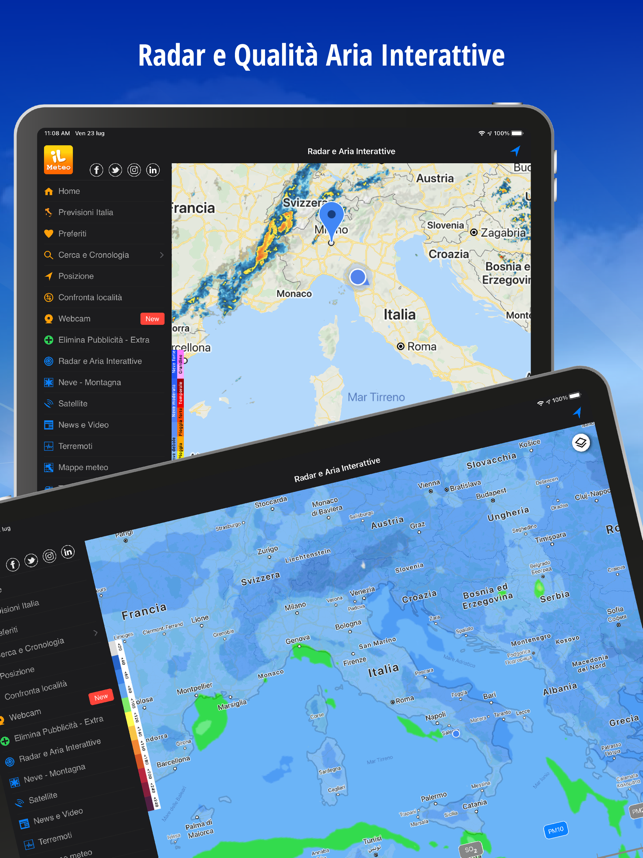 Le nostre previsioni attendibili e precise, grazie alla tecnica Nowcasting, sono perfette per programmare e godere al meglio delle tue giornate, senza farti trovare impreparato da improvvisi cambiamenti atmosferici. Grazie alle informazioni in real-time delle centraline metereologiche, le allerte e i disagi della protezione civile, i radar, le viste satellitari e i dati sull’inquinamento dell’aria l'app iLMeteo ti fornirà tutte le informazioni che cerchi e non sarai mai sorpreso dai cambiamenti meteo.Ed in caso di maltempo, previsioni ogni 10 minuti grazie all’integrazione dell’intelligenza artificiale!Per avere sempre la massima attendibilità e precisione, scopri anche la funzionalità "Confronto Previsioni" con cui puoi confrontare le previsioni de iLMeteo con i principali modelli mondiali.Segnalazioni, notizie e pubblicità:- In caso di previsioni errate, vi preghiamo di contattarci a info@ilmeteo.it indicando il nome della località e il giorno della previsione; in quest