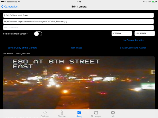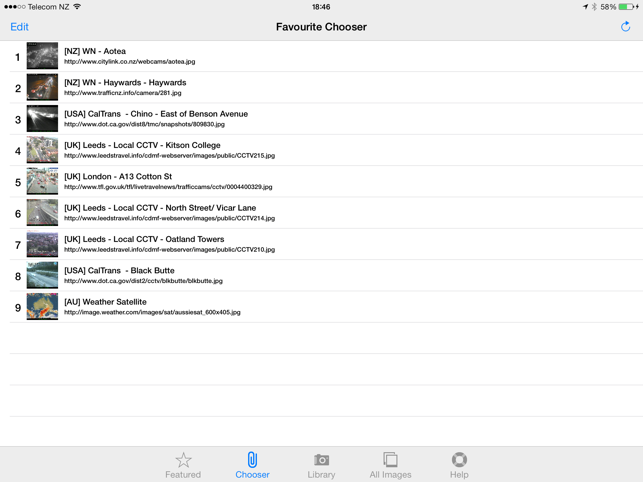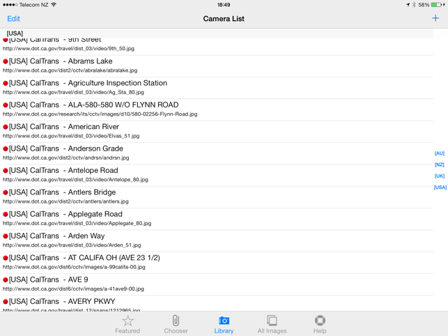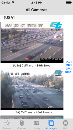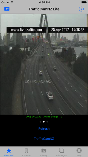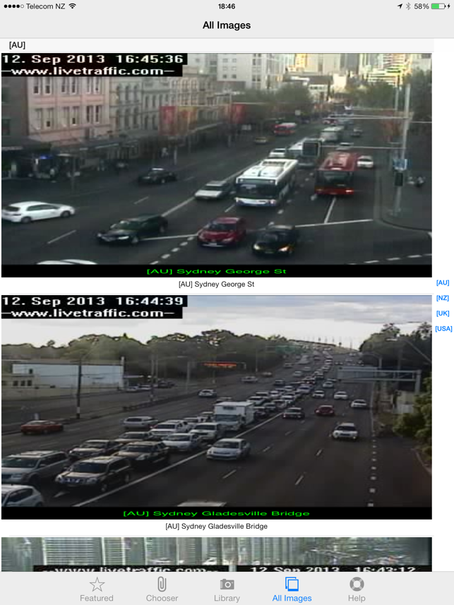 TrafficCamNZ Lite gives you the power to load any Internet web camera that you want to look at. A default list of more than 50 cameras is provided, you can then find and add your own.TrafficCamNZ L:ite is limited to displaying 4 images (6 on iPad) - this can be any 4 (6 on iPad) images of your choosing. Apple iAd advertising is included. To display more than four images and without advertising you need TrafficCamNZ (the paid for version) this can be downloaded from the AppStore.TrafficCamNZ displays internet accessable pictures of Traffic Cameras. You could use it for any image, even weather maps.Images you choose as "Featured" are downloaded and setup side by side so that you can swipe across the screen to view multiple images quickly.TrafficCamNZ works over the cellular network though it works best with WiFi because, usually, it's faster!The application comes pre-configured with a small selection of Traffic Cameras from around the world. You can turn those off and turn
