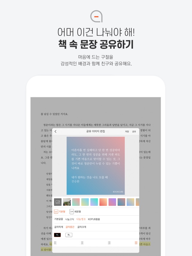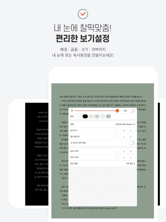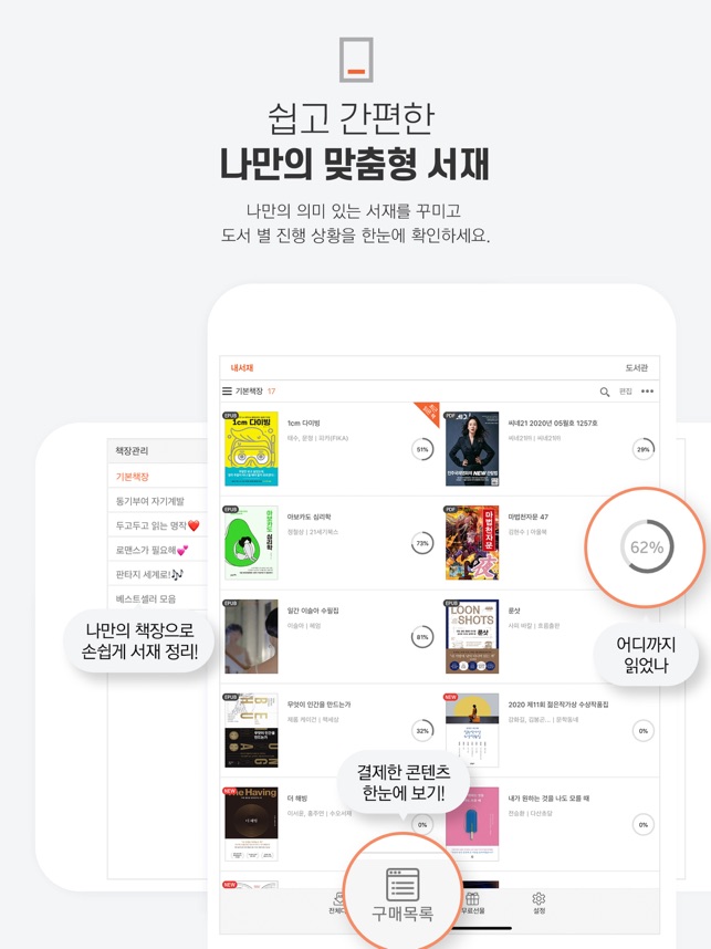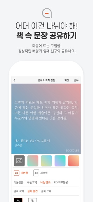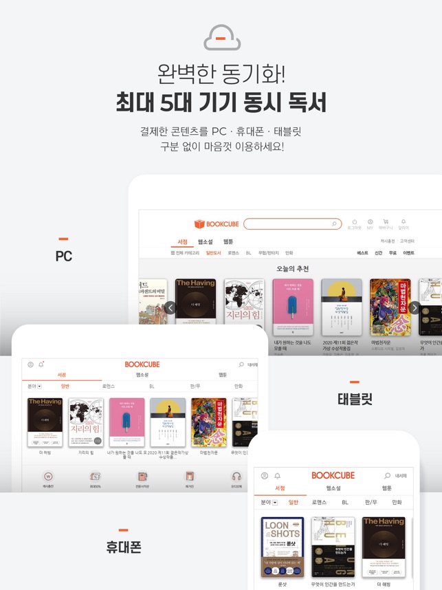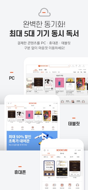 e북 포털, 북큐브(BookCube)! 지금 북큐브로 새로운 독서를 경험해 보세요! 언제나 어디서나 아이폰/아이패드로 즐기는 스마트한 e-book 라이프! [북큐브 앱의 다양한 기능] - 편리한 내서재와 가독성이 뛰어난 앱 뷰어- 멀티 다운로드 : 여러권의 전자책을 한 번에 다운로드 가능 합니다.- 책장 기능 : 이용자가 자유롭게 책장을 추가 하여 많은 양의 전자책을 쉽게 관리 할 수 있습니다.- 뛰어난 가독성을 위한 앱 뷰어 기능 : 스크롤뷰, 테두리 여백 조절, 폰트 크기 단계 조절 등을 통해 뛰어난 가독성을 자랑 합니다.[전자책 도서관] - 전자책 무료 대여 서비스- 500여 개의 전자책 도서관 가입 후 무료로 대출에서 열람까지 One-Stop으로 이용해보세요.- 서울대/연세대/고려대 등 학교도서관 및 과천/부산북구/정독도서관 등 공공도서관뿐 아니라 GS건설/LH공사/롯데건설 등 아파트단지 도서관까지!문의사항이나 기술적인 문제가 있을 경우 아래로 연락주시면 신속하게 답변 드리겠습니다. Tel: 1588-1925 / e-mail : webmaster@bookcube.com