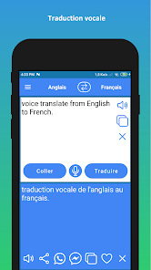 Grce la fonctionnalit vocale intgre vous pouvez couter des mots ou des phrases Cliquez sur le hautparleur et l39application lira des mots/phrases en anglais L39application lira galement des mots/phrases franais