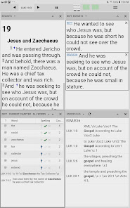 Sync scrolling By default all text panes shown on screen scroll together when you tap in a verse