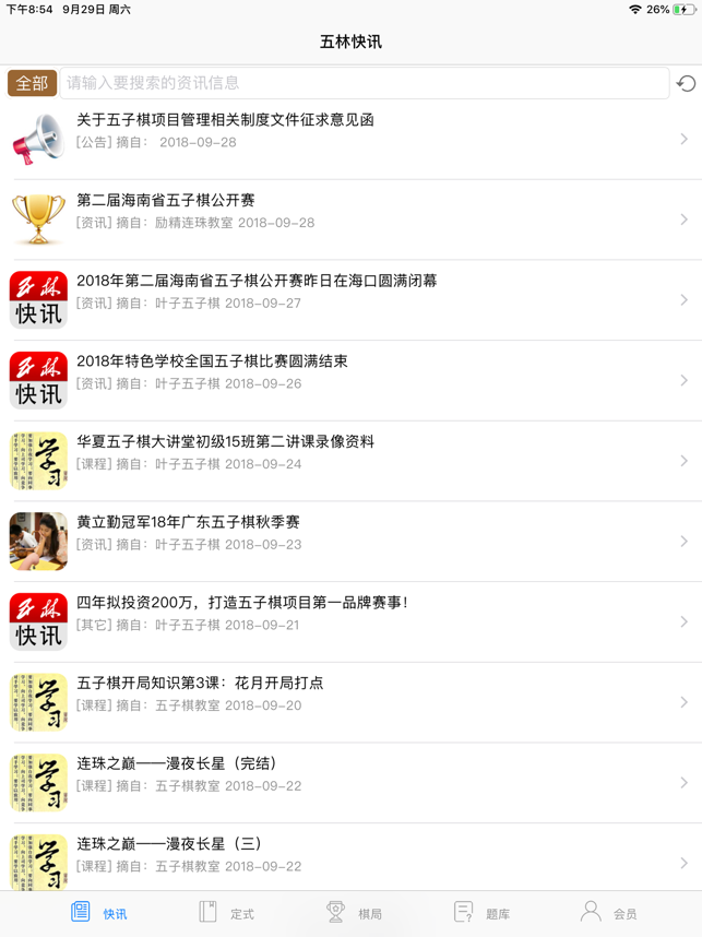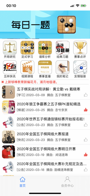 平台提供丰富的五子棋学习内容:1、基于20万海量实战棋谱,提供落点胜率分析,同时也提供日期、棋手、赛事等多种筛选条件。2、提供详细瑞星、疏星、松月、花月、浦月等常用定式的学习材料,通过考试模式、研究模式,便于快速掌握基础定式。3、提供官方正式授权的日本段位评级、坂田三手胜、中村美味等多套习题库,每日一题答对即可赠送积分。4、提供国内、国际顶级五子棋职业大师的赛事对局点评,深度体会大师选点的思路历程。5、提供RIF连珠榜单棋手开局分析、对局赏析及主要获奖经历查看。6、提供我的对局笔记录谱功能,并支持通过邮件将lib文件发送到电脑。7、汇集国内众多知名五子棋网站、公众号,实时掌握五子棋圈内的动态资讯。8、构建完整会员积分体系,各种活动赠送大量积分,可用获得的积分解锁大部分学习资料。