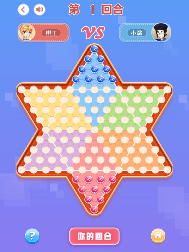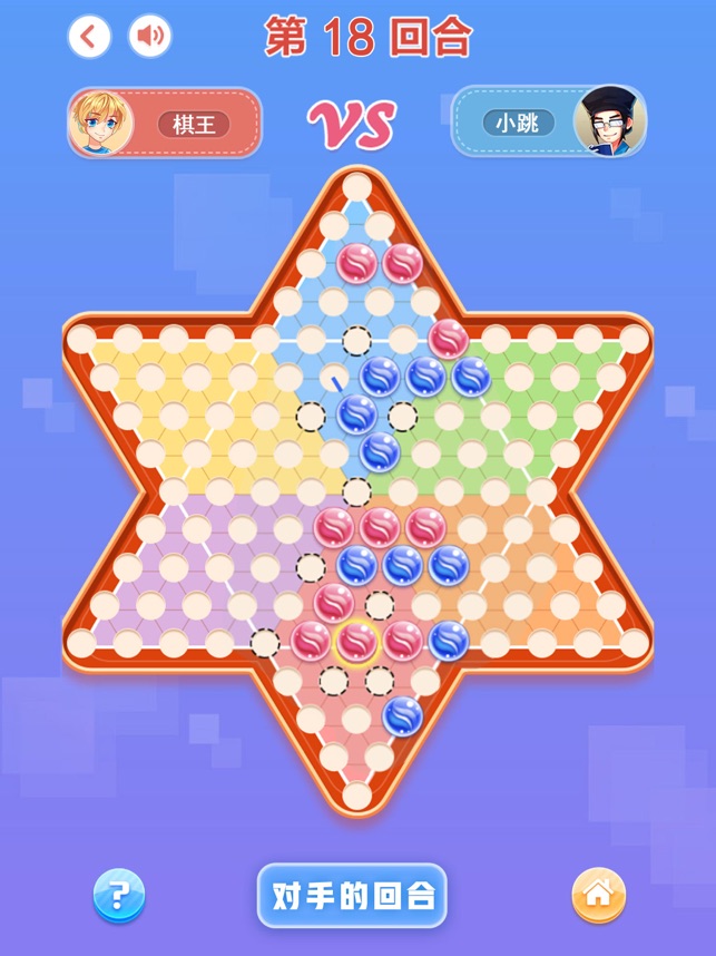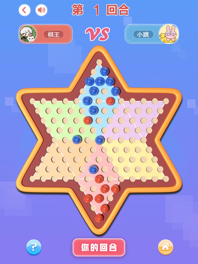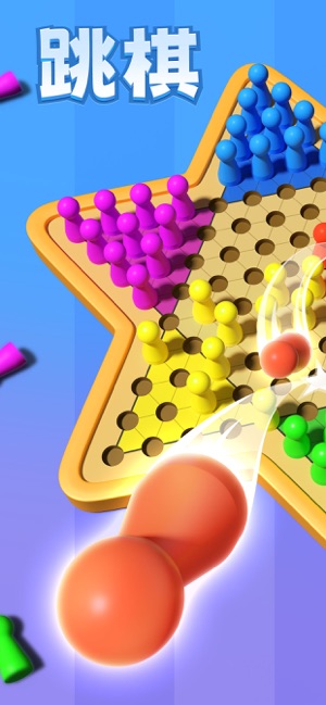 每个人的童年都少不了弹珠的影子,晶莹漂亮的玻璃球形,多种多样的玩法用途,都让童年的我们爱不释手。在众多弹珠玩法中,跳棋是其中广泛使用的一种玩法。跳棋是一种以六角星形作为棋盘,弹珠为棋子,可有六人同时进行的棋类游戏。双人对弈时,对弈双方分别占领棋盘的两个对面角,先用自己的棋子占领对方棋盘的一方获胜。游戏过程中,棋子可以通过跳跃一个棋子到达其它位置,也可以一步一步通过直线连接的方向移动。在跳跃之后,如果依然存在满足条件的棋子可以让移动棋子跳跃,移动棋子则可以连续跳跃。想要更快占领对方阵地,需要尽量多的创造条件连续跳跃哦。