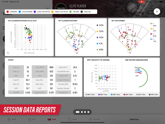 The Rapsodo Diamond App is the latest iOS application from the Diamond Sports team at Rapsodo. This app combines the attributes from the Pitching and Hitting applications and allows users a single point of access to Rapsodo's systems. Additionally, direct cloud access and more team management functionalities have been added for users to do more inside the application itself. Available for Rapsodo Team Members only.