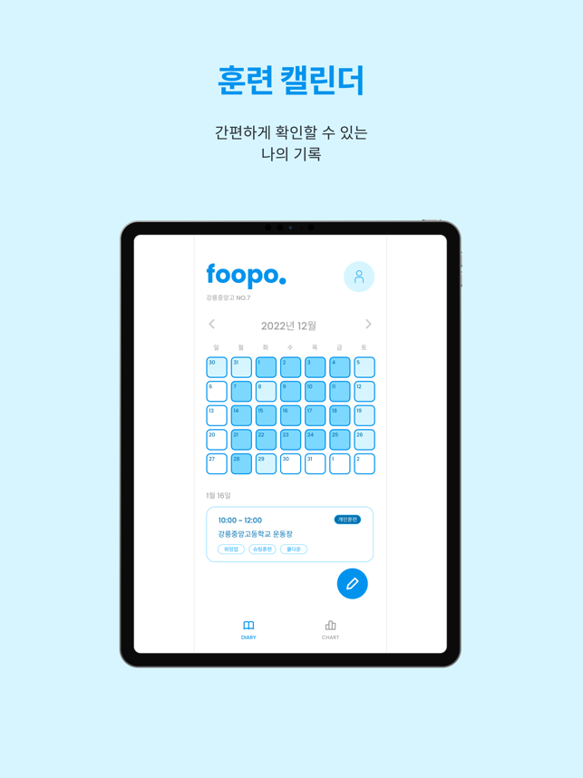 모든 축구선수를 위한 서비스는 아닙니다.- 푸포로그는 국가대표의 꿈을 가진 선수를 위한 것입니다.- 푸포로그는 남들 쉴 때 개인운동을 나가는 선수를 위한 것입니다.- 푸포로그는 머릿속이 축구로 가득 찬 선수를 위한 것입니다.- 푸포로그는 하루하루 힘들고 외로운 싸움을 하는 선수를 위한 것입니다.꿈을 향해 가는 길 함께 가겠습니다.푸포로그는 축구 선수들에게 편리한 일지 쓰기 기능을 제공하고, 훈련 데이터를 통계학적으로 분석해 차트 형태로 보여주어 폭발적인 성장과 성공이 가능하도록 하기 위해 만들어졌습니다.선수들이 자신의 훈련 데이터를 객관적으로 분석하고 판단해 실력 증진 및 부상 방지를 하기 위한 목적을 지닙니다.서비스 관련 문의는 인스타그램 foopolog DM으로 남겨주세요 ^^