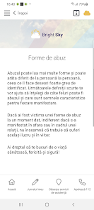 Bright Sky Romnia este o aplicaie gratuit care ofer asisten i informaii persoanelor aflate ntro relaie abuziv sau celor care sunt ngrijorate pentru o persoan cunoscut Aplicaia este disponibil n limba romn englez i maghiar