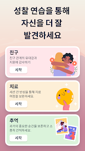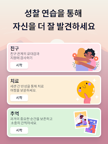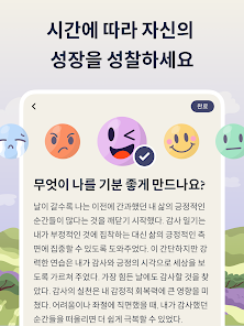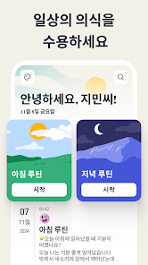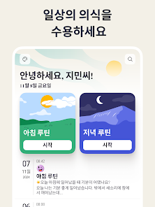 긍정적인 마음과 성찰로 하루를 시작하고 마무리하세요 맞춤형 아침과 저녁 루틴을 설정하여 셀프케어와 감사 실천을 계속 유지할 수 있습니다