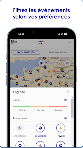 une carte des vnements routiers en temps rel route ferme incident panne accident bouchon chantier etc avec leur localisation leur description leurs impacts sur la circulation et quand cest possible la dure prvisible des perturbations