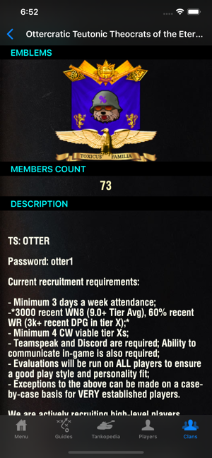 THIS IS NOT A GAME!THIS IS GUIDE for World of Tanks game.(Unofficial)For more information on WORLD OF TANKS, please visit the official website at http://www.worldoftanks.com. To set up a Wargaming.net account and to opt-in to Wargaming beta tests, please visit the official Wargaming.net website at http://www.wargaming.net Application allows you to:- Track news and comments from Official EU/US/RU forums.- Guides, tips and tricks.- Tankopedia.- Achievements.- Clans.- Tank comparison.- Weak Spots. ( low lvl and artys does not have)- Overlord's blogs.- Player stats. Some features requires internet connection.All images are property of Wargaming.net------------------------------------------This is unofficial guide.It is not created, endorsed by affiliated with the creators of this game or its licensors. We are not associated with the owners of this game in any manner. No one has authorized, sponsored or sanctioned this unofficial guide.In creating this unofficial guide, we assert its ri