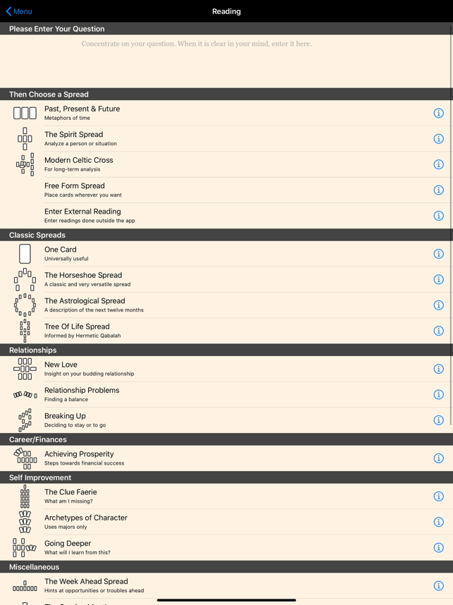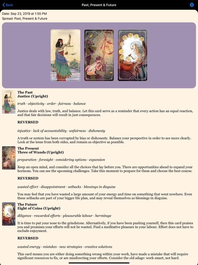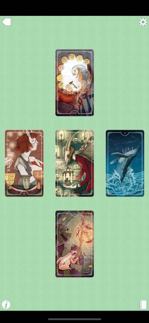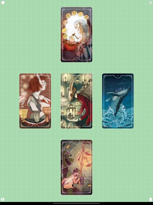 Ostara Tarot is as fresh and wild as the verdant springtime. The creation of four artists from the Pacific Northwest, the deck is a unique and surreal interpretation of the traditional Rider-Waite cards. In Ostara Tarot, the familiar scenes take fanciful forms, and the usual suspects are played by a wondrous array of divinities, people, animals, and mythical beings. Some cards show us unearthly visions of nature, others portray realms of purest whimsy. Each artist drew one suit and some of the Major Arcana. Each creator has endowed her suit with a distinctive yet complementary art style, giving us a playful, cohesive, and innovative masterpiece. *Intuitive, elegant interface is easy for beginners and experts*Gorgeous full screen, high-resolution card images*Full support for all current iOS devices*Sophisticated journal*Includes unabridged compact book*18 spreads built in*Design your own layout with Free Form*Allow reversed cards or not*Option to use Major Arcana only*Zoom in to e