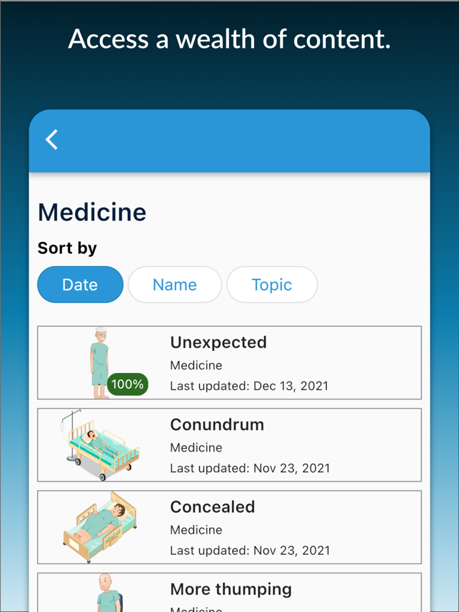 A completely new look that’s easier on the eyes, is easier to navigate, and runs smoother on your device—making your clinical practice sessions even better!