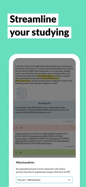 The AMBOSS Qbank App for USMLE® Step, NBME® Shelf, NBOME® COMLEX-USA, ABIM, ABFM, ABP exams is the ultimate test preparation and study resource for medical students and residents. Dive into thousands of questions to enhance your knowledge and prepare for all of your exams.The AMBOSS Qbank App will rigorously prepare you for the USMLE Step 1, Step 2 CK, Step 2 CS, Step 3, NBME Subject Board (Shelf) exams, and your clerkships, COMLEX Level 1, Level 2-CE, Level 3 and COMAT — Osteopathic principles and practice along with NEJM Knowledge+ questions for ABIM, ABFM, and ABP Board Review.AMBOSS Qbank App works online and offline, so you can answer questions and reinforce your knowledge anytime, anywhere. It’s cross-linked with the AMBOSS Knowledge App so you can practice questions in the Qbank while simultaneously looking up relevant terms in the AMBOSS Knowledge Library. AMBOSS Knowledge and AMBOSS Qbank Apps combine to give you one powerful exam-preparation resource.With AMBOSS Qbank App, yo