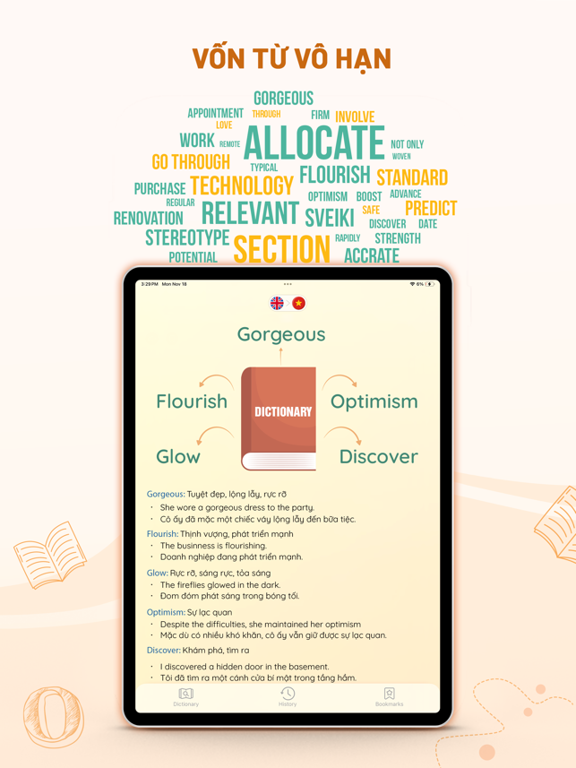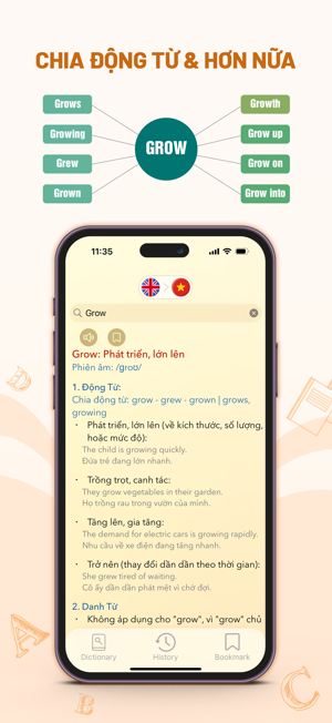 - Tra cứu từ kèm hình ảnh minh họa sống động, trực quan- Tích hợp tra cứu từ điển Cambridge Anh - Anh- Tích hợp tra cứu từ điển Colins Anh - Anh