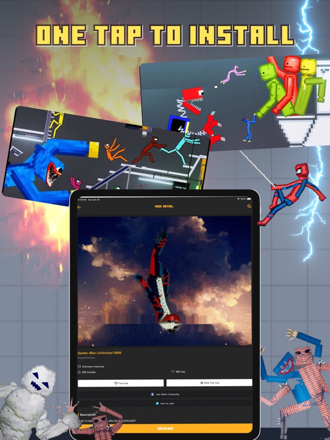 Mod for MelonMod for Melon provides users with many opportunities to create different situations and characters. Become part of a great experience that can involve car crashes, tanks, guns, dinosaurs, or tall buildings with tons of furniture.All mods are thoroughly tested and optimized for mobile devices. Simply browse the mods you like and click "Download". We've also provided detailed instructions on installing the mod loader into the game, so every player can install mods easily, quickly, and without any issues.Why you should download Mod for Melon:- A selection of unique and rare hand-picked mods.- A user-friendly and intuitive interface.- Mods are organized into different categories for convenience.- Each mod features a brief description and images.- Play with your friends using our mods.Features:- Automatic installation of addon in one touch- Hundreds of different items & mods for Melon- Constant updating of databases- Friendly and convenient user interface- An