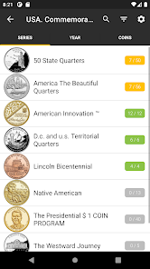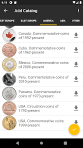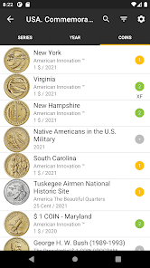 The application contains a complete list of Commemorative and Circulation coins of the USA Europe Canada and other countries
