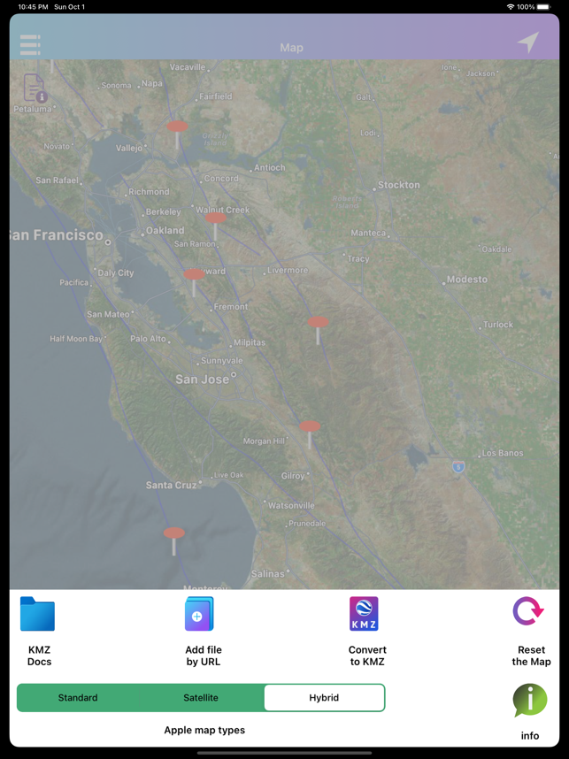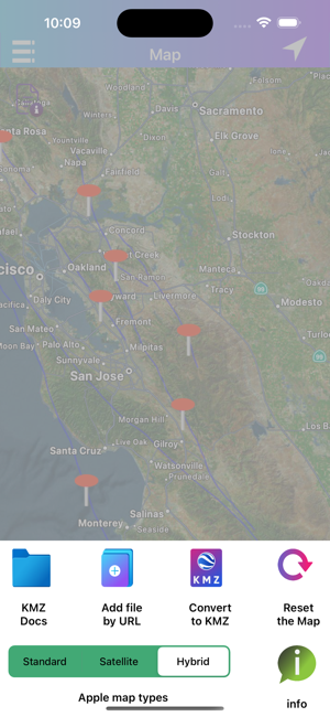 KMZ Viewer-Converter is an application provides you to load the kmz files, convert kmz files over the map.This app works for offline and online.How to Export or Import .kmz files into Application?You can view, add or import .kmz files into the application in multiple ways1)Keep the .kmz files to the mail or any places in mobile, then long press on kmz file that shows the application icon.click to import the file over the map.2)Share files from other apps which will be similarly supported files like Email,WhatsApp,Add to Notes,Add to iCloud Drive,Save to files and other apps.3)Click on “Add through link” Icon on Menu bar enter .kmz files link to add the files into the application. 4)Connect your iPhone or iPad to System then iTunes will automatically opens an window.Click phone symbol on top left—>File Sharing and you can see the Kmz viewer app then click on app icon to add .kmz files.5)Tap on the file to share or export to the other Applications.How to create Kmz Markers?1)Long pre